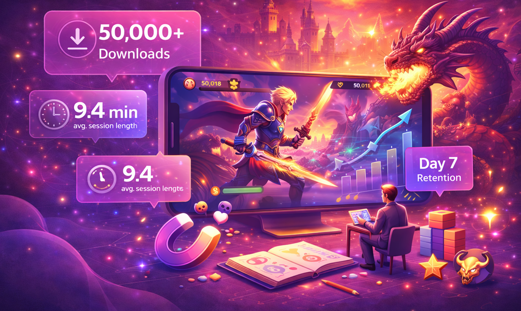 After three months of beta testing and refinement, Shadowbound Trails launched globally and delivered strong early results: 50,000+ downloads in the first 60 days, an average session length of 9.4 minutes, Day 7 retention of 18% (above genre average), and a 4.6 store rating. Players consistently praised the combat fluidity, art style, level variety, and boss encounters.