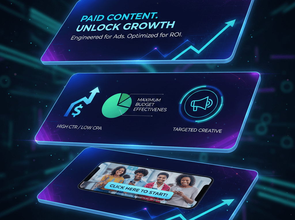 We develop specific, targeted content creation designed to perform perfectly in paid advertising. This maximizes your ad budget by guaranteeing high click-through-rates (CTR) and low costs, making your paid spend more effective.